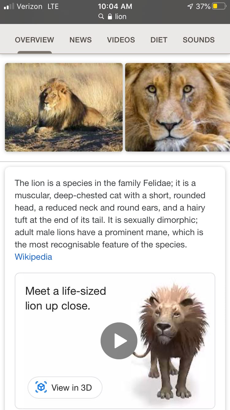 First Ar Objects Launch In Google Search With 3d Animals 9to5google